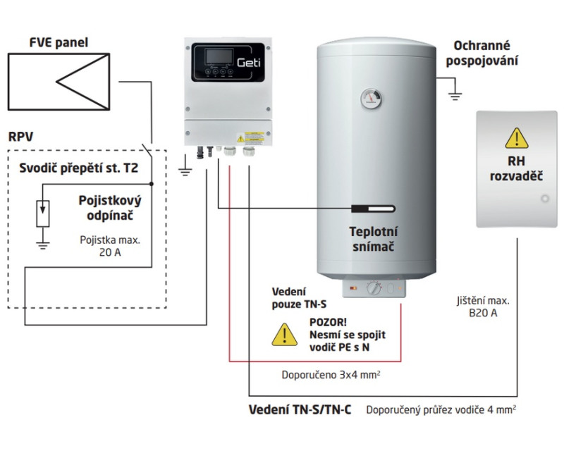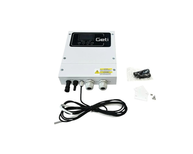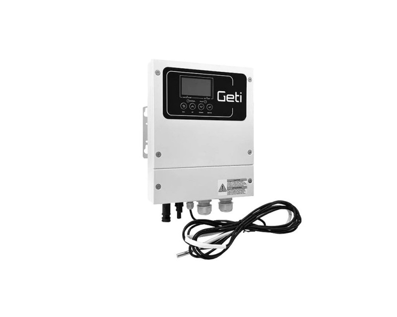Invertor je vybaven přehledným displejem, teplotním čidlem s délkou 3m a nezávislým nastavením teploty pro ohřev vody jak z PV tak AC sítě. Invertor GETI je kompatibilní s většinou bojlerů na trhu.