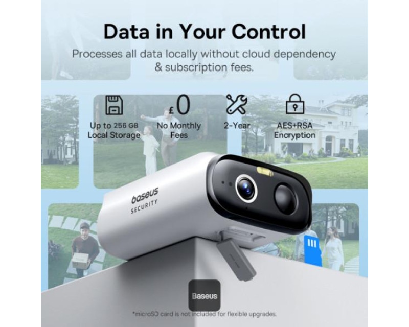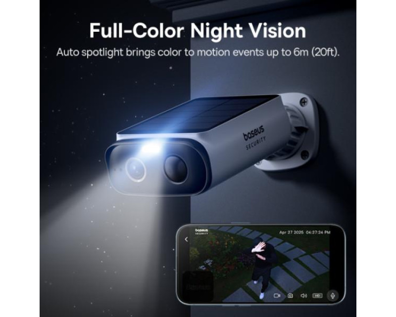 Baseus Security S1 Lite 2K je bezdrátová venkovní kamera s vestavěným solárním panelem, určená pro nepřetržité monitorování bez nutnosti častého dobíjení. Kamera nabízí ostrý obraz, barevné noční vidění a inteligentní funkce pro detekci pohybu.