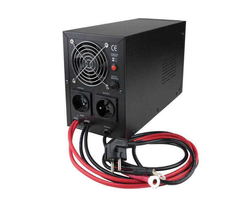 Při napájení ze sítě jsou napájeny připojené spotřebiče přímo ze sítě, externí akumulátor je dobíjen, při výpadku sítě zdroj automaticky přepne na měnič napětí, energie je odebírána z akumulátoru, spotřebiče jsou napájeny z měniče. Po obnovení el. energie zdroj automaticky přepne na síť, začne se akumulátor dobíjet.