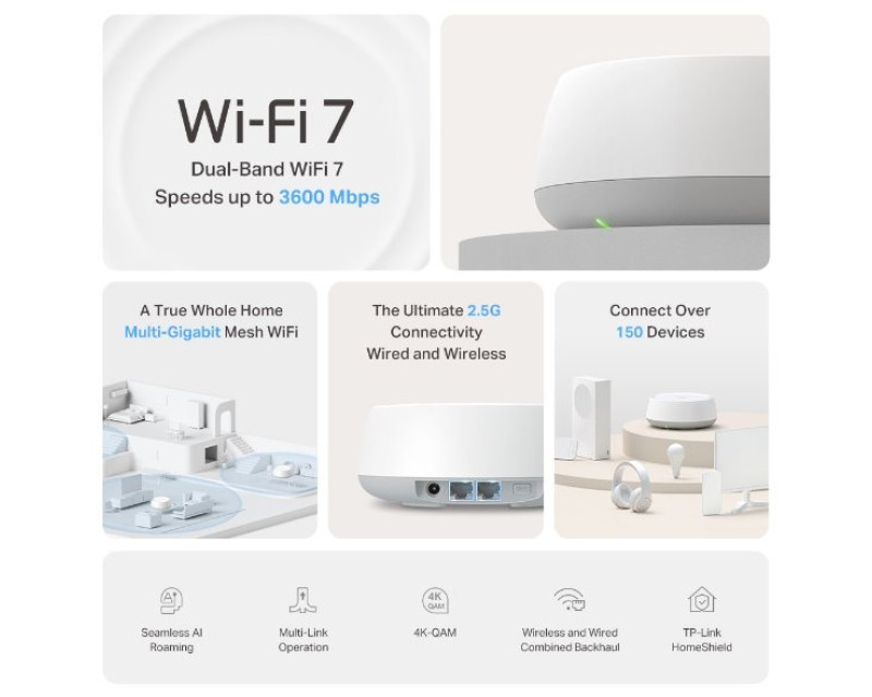 • WiFi router TP-Link Deco BE25(1-pack) BE3600, WiFi 7, 2x 2.5GLAN, USB, 2,4/5/6GHz