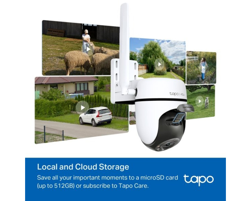 Kamera je vybavená slotem na microSD kartu s kapacitou až 512 GB. Pokud vám tento typ úložiště nevyhovuje, vyzkoušejte cloud Tapo Care. S jeho pomocí máte neustálý přístup ke svým záznamům.
