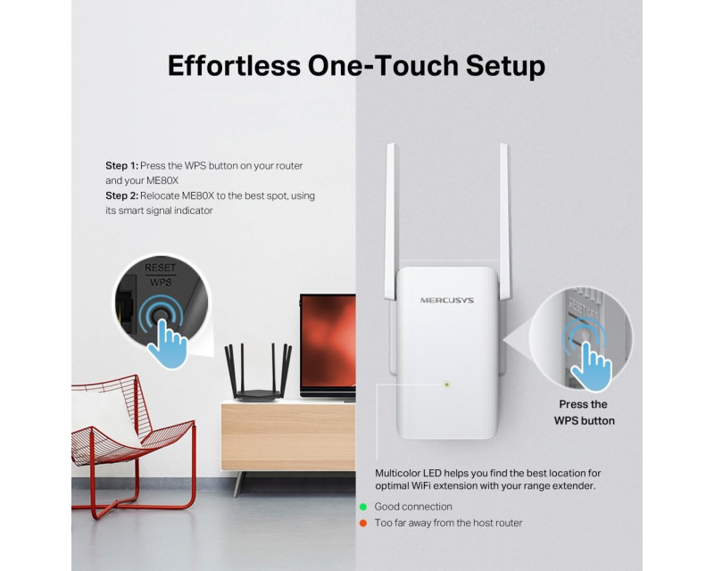• WiFi extender TP-Link Mercusys ME80X AP/Extender/Repeater - AX3000, 1x GLAN