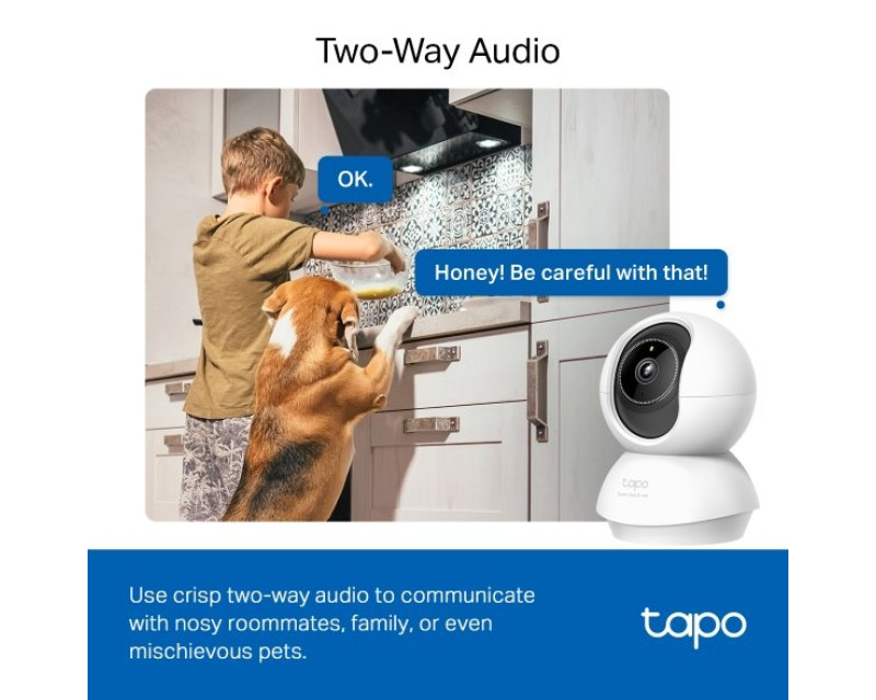 Wi-Fi kameru můžete ovládat také hlasem, a to pomocí hlasových asistentů Google Assistant a Amazon Alexa. Pokud si navíc stáhnete do svého chytrého zařízení aplikaci Tapo, můžete se svými přáteli a rodinou sdílet nahrané kamerové záznamy.