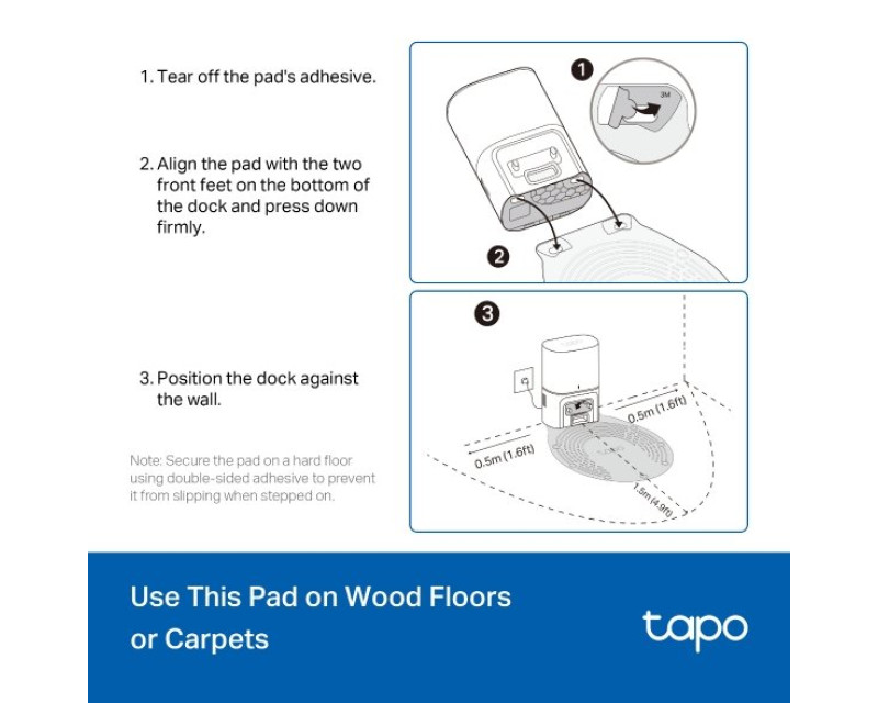 Vlastníte robotický vysavač Tapo značky TP-Link? Pořiďte si pod něj praktickou vodotěsnou podložku. Využijete ji především na dřevěných podlahách či kobercích. Spolehlivě zabrání vytečení vody na podlahu po mopování. Jistě vás potěší také snadná instalace bez použití nářadí.