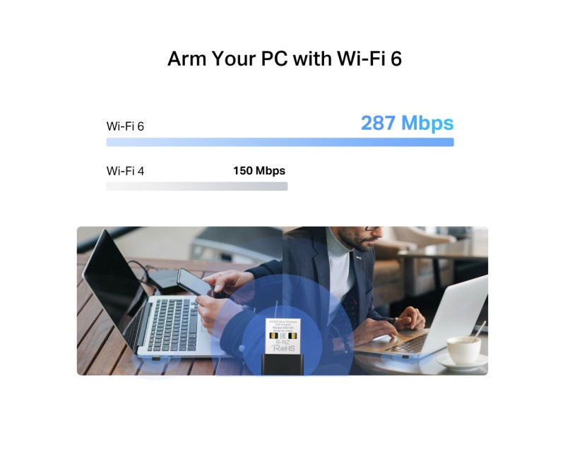 Miniaturní dvoupásmový Wi-Fi adaptér Mercusys MA14N připomíná svou velikostí adaptér od bezdrátové USB myši. Navzdory svým drobným rozměrům zvládne poskytnout přenosovou rychlost bezdrátového připojení až 287 Mbps v pásmu 2,4 GHz. Využijete ho tedy jak pro běžnou kancelářskou činnost, tak v domácnosti. Kompaktní provedení je ideální na cesty.