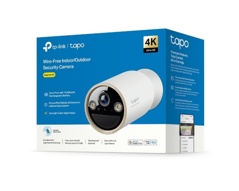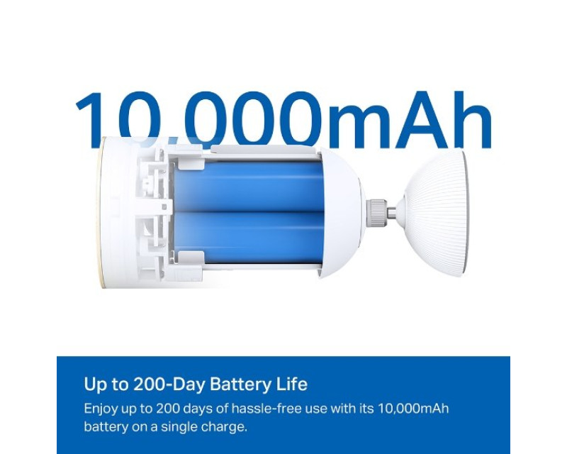 - Zdroj energie: 10 000 mAh zabudovaná Li-Ion baterie, volitelný solární panel Tapo A201 (prodává se samostatně)