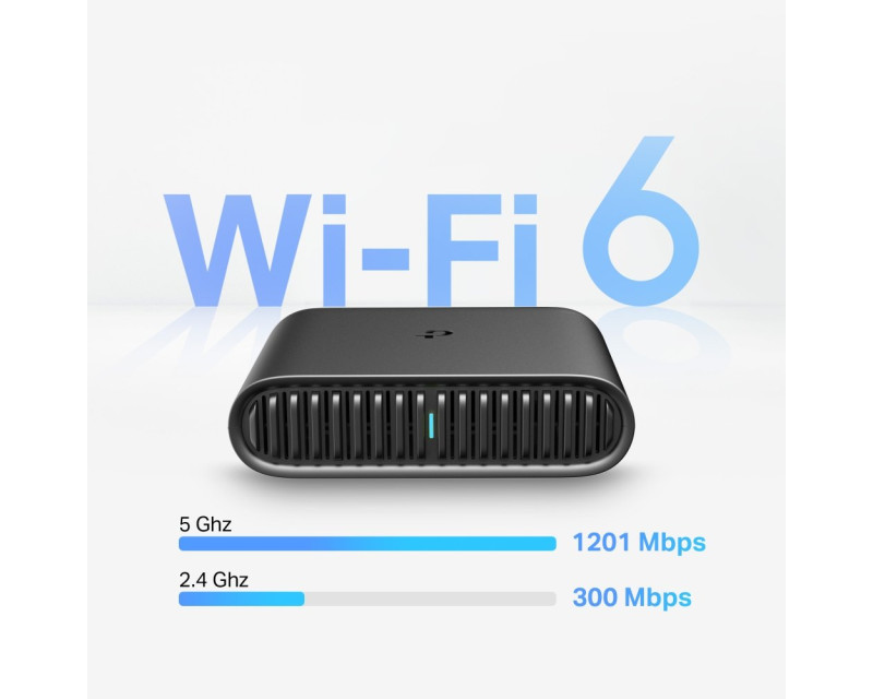 Kompaktní a přenosný Wi-Fi router TL-WR1502X od značky TP-Link je ideální na cesty. Vytvoří kvalitní a spolehlivou dvoupásmovou síť AX1500, kterou využijete i v místech s hustým provozem a velkými nároky na připojení. V pásmu 5 GHz vám router poskytne rychlost až 1 201 Mbps a v pásmu 2,4 GHz300 Mbps. To využijete při hraní her nebo při využívání virtuální reality. Těšit se můžete také na plynulé streamování videí v rozlišení 4K a nepřerušované videohovory. Technologii Wi-Fi 6 si zkrátka oblíbíte.