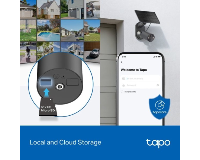 Pořízené záznamy ukládáte na kartu microSD o kapacitě až 512 GB. Další možností je ukládání dat na cloudové úložiště Tapo Care, které poskytne neomezený prostor pro vaše bezpečnostní záznamy.