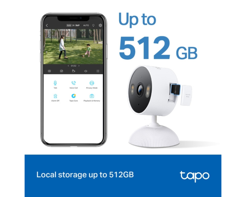 Záznamy se ukládají na microSD kartu s kapacitou max. 512 GB. Tím zabráníte případným hackerským útokům přes internet. Využít ovšem můžete i cloud Tapo Care.