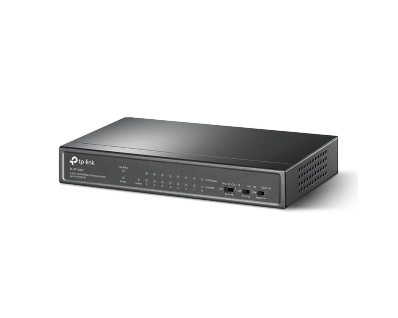 TL-SF1009P je 9portový 10/100M PoE switch s funkcí priority portů, který umožňuje napájet na dálku zařízení s podporou normy 802.3af /48 V. Pro napájení slouží prvních 8 portů, další 1 port pak slouží jako klasický switch. Porty automaticky detekují zařízení, která jsou s tímto standardem kompatibilní. PoE switch se výborně hodí tam, kde není k dispozici el. zásuvka např. na střechách, půdách, stožárech atd., anebo pokud chcete ušetřit na dalších kabelech nutných pro napájení zařízení.