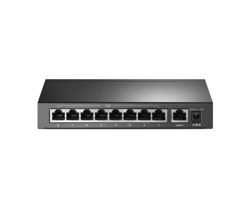 Vyhovuje standardu 802.3af/at PoE + a podporuje až 30 W napájení na každém PoE portu. Celkový výkon až 65 W při napájení přes PoE pro 8x PoE porty, umožňuje otevřít široké spektrum aplikací, jako je dohled pro kanceláře, koleje a malé podniky. Je plně kompatibilní s IP kamerami, přístupovými body, IP telefony, počítači, tiskárnami atd.