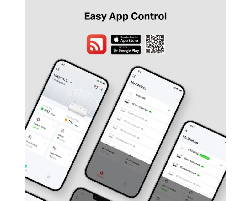Router MR25WBE zvládne náročné streamování ve 4K/8K, hraní her ve VR/AR či videokonference. Technologie MLO umožňuje přenos dat přes více pásem najednou, čímž snižuje rušení a výpadky. Čtyři antény se zesílením signálu proniknou i přes zdi a poskytnou spolehlivé pokrytí ve více místnostech.