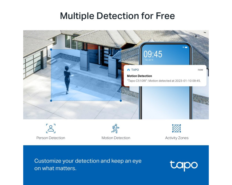 Bydlíte v rušné čtvrti a chcete ohlídat svůj rodinný dům či firmu? Máme pro vás skvělé řešení v podobě 3MPx IP kamery TP-Link Tapo C510W, která vám poskytne čistý obraz ve 2K rozlišení a 360° horizontální a 130° vertikální rozsah pro zachycení celého okolí. Zároveň podporuje mnoho praktických funkcí, protokolů a technologií, jako je například plnobarevné noční vidění, detekce osob a sledování pohybu, obousměrné audio, přizpůsobení zvukového alarmu, vzdálená správa přes chytrou aplikaci, hlasové ovládání přes Google Home / Amazon Alexa a ukládání záznamů na cloud či microSD kartu. V balení navíc dostanete 2ks kamery C510W pro větší rozsah kontroly.