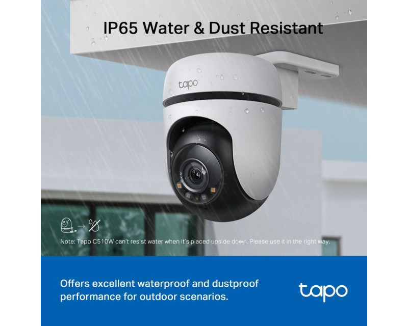 Otočná kamera Tapo C510W vám zajistí široké možnosti umístění, proto je ideální pro vnitřní i venkovní zabezpečení domácnosti, pozemku, garáže, obchodu, kanceláře i mnoha dalších objektů. Součástí balení je univerzální montážní sada, pomocí které snadno a rychle nainstalujete kameru na jakoukoliv stěnu, strop nebo sloup. Je tedy jen a pouze na vás, jaký typ či část nemovitosti má pohlídat. Tělo kamery je navíc dostatečně odolné vůči prachu, vlhkosti a vodě dle specifikace IP65, proto vám bude sloužit stále stejně spolehlivě po mnohem delší dobu.