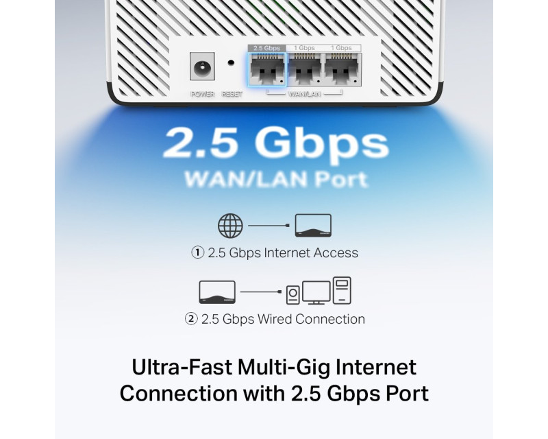 • 1× 2,5Gbps port + 2× 1Gbps LAN – multigigabitová konektivita