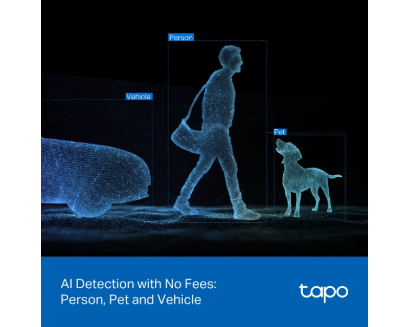 Kamera využívá pokročilou AI, která rozpozná osoby, zvířata i vozidla – bez měsíčních poplatků. Díky funkci „One-Tap Focus“ rychle zaostří na vybranou oblast. Notifikace a nahrávky lze přizpůsobit pomocí zón a citlivosti.