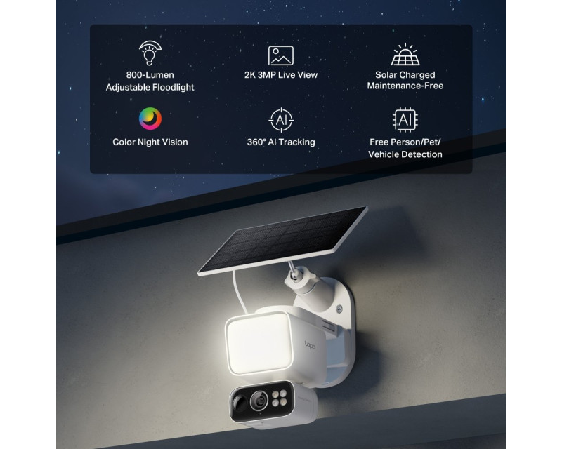Zabezpečte svůj domov chytře a bez kabelů s kamerou TP-Link Tapo C615F KIT se solárním napájením a 800lm světlometem. Otočná 2K kamera s chytrou detekcí osob, zvířat a vozidel poskytuje špičkový přehled i v noci, bez nutnosti elektrické zásuvky.