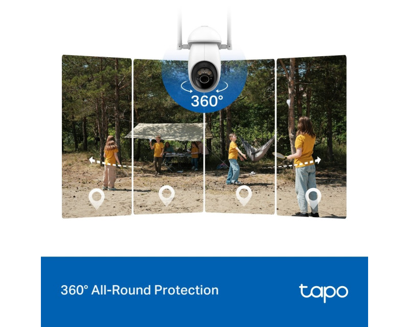 Tapo C665G vám zajistí nepřetržité 24/7 sledování v ohromujícím 4K rozlišení, a to i bez klasického napájení. Díky integrovanému solárnímu panelu a silné baterii funguje bezúdržbově a ekologicky. Kamera se otáčí v rozsahu 360° horizontálně a 98° vertikálně, čímž pokryje celou sledovanou plochu.
