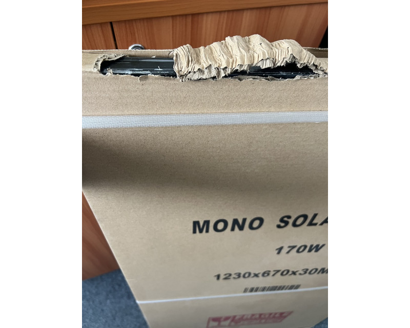 Tento solární panel je nový, nikdy nepoužitý a nerozbalený. Má pouze LEHCE ODŘENÝ rám při manipulaci. Viz poslední FOTO. Prodávaný s plnou zárukou 24 měsíců. Vše čisté, nepoškozené, pouze opravdu lehce poškrábané. Panel je prodáván v originálním balení. Je NOVÝ !