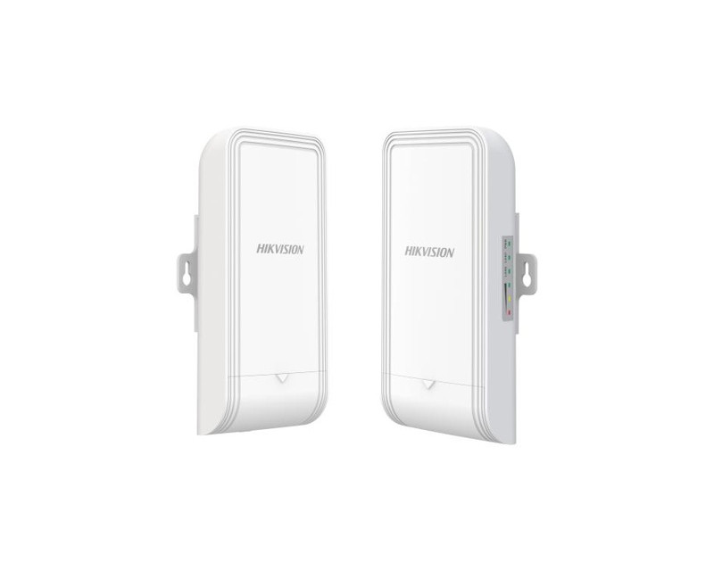 Přenosové jednotky - IP HIKVISION EUROPE B.V. Propustnost max. 300 Mbps, vzdálenost až 1 km, standard 802.11b/g/n s technologií 2×2 MIMO, režimy PTP a PTMP (1:4), operuje v pásmu 2.4 GHz (2400–2483.5 MHz), interní anténa se ziskem 7 dBi a vyzařovacím úhlem 60° × 50°, výstupní výkon 22 dBm, citlivost příjmu −87 dBm, reálná propustnost až 90 Mbps, 2× RJ-45 10/100 Mbps, napájení PoE 802.3af/at nebo pasivní PoE, max. spotřeba 4.5 W, PoE budget 10 W, dosah PoE až 100 m, pracovní teplota −30 °C až +60 °C, vlhkost 5–95 %, rozměry 90.8 × 187.9 × 57.9 mm, montáž na stožár, balení obsahuje 2× jednotku a PoE napájecí zdroje, krytí IP55.