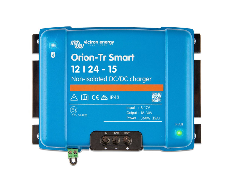 Nabíječka Orion-Tr Smart DC-DC neizolovaná je profesionální DC-DC adaptivní třístupňovou nabíječkou se zabudovanou funkcí Bluetooth. Je určena pro použití v duálních bateriových systémech ve vozidlech nebo na lodích, kde se k nabití servisní baterie používají (inteligentní) alternátor a startovací baterie. Jednotku lze monitorovat a programovat přes Bluetooth a ovládat dálkově pomocí dálkového spínače zapnutí/vypnutí. Nabíječka je také vybavena mechanismem detekce chodu motoru.