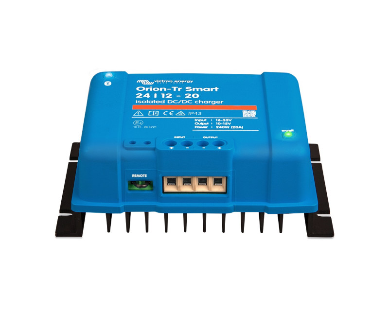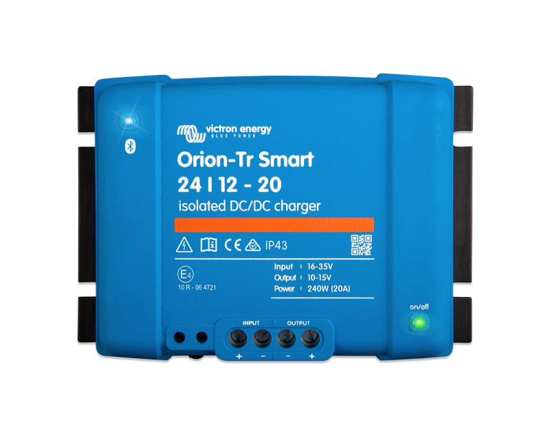 Nabíječka Victron Energy Orion-Tr Smart DC-DC je profesionální DC-DC adaptivní třístupňovou nabíječkou se zabudovanou funkcí Bluetooth. Je určena pro použití v duálních bateriových systémech ve vozidlech nebo na lodích, kde se k nabití servisní baterie používají (inteligentní) alternátor a startovací baterie. Jednotku lze monitorovat a programovat přes Bluetooth a ovládat dálkově pomocí dálkového spínače zapnutí/vypnutí. Nabíječka je také vybavena mechanismem detekce chodu motoru.