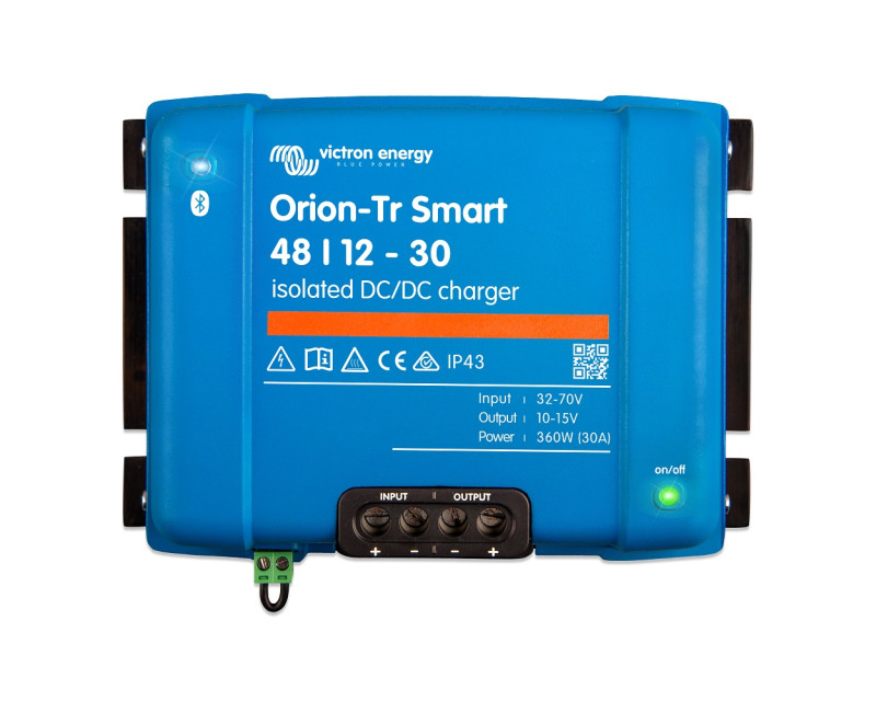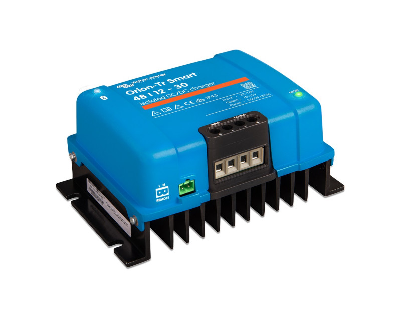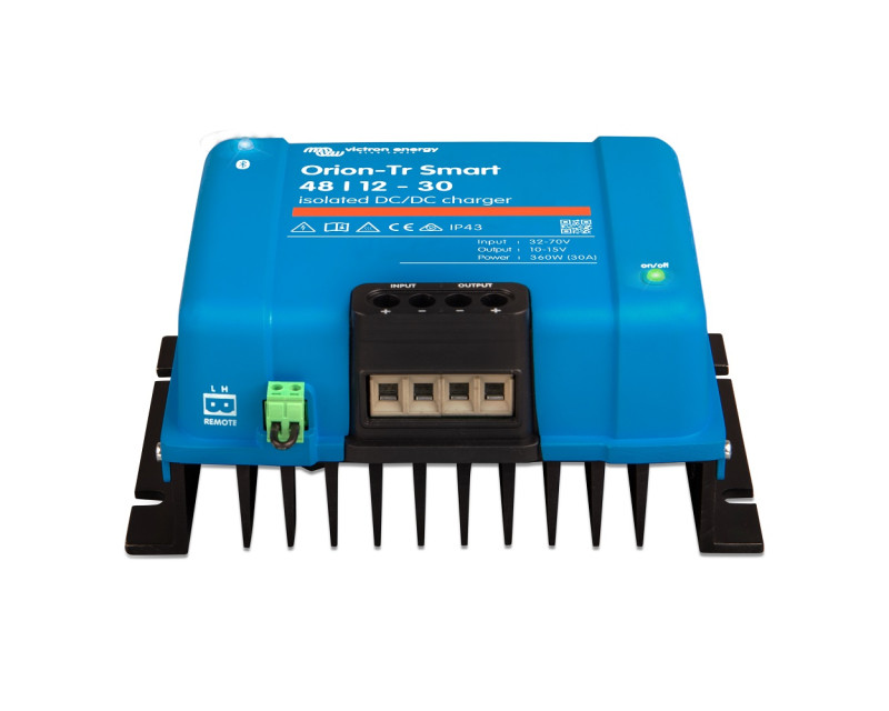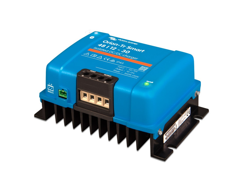 Orion-Tr Smart DC-DC nabíječka 48/12-30 (360 W) od společnosti Victron Energy je vysoce efektivní a plně programovatelné řešení pro nabíjení 12V baterií z 48V systémů. Nabíječka je vybavena galvanickou izolací, adaptivním třístupňovým algoritmem nabíjení a podporou Bluetooth Smart pro snadné nastavování a monitorování pomocí aplikace VictronConnect. Vhodná je zejména pro systémy s inteligentními alternátory a pro aplikace v lodích, obytných vozech či specializovaných mobilních instalacích.