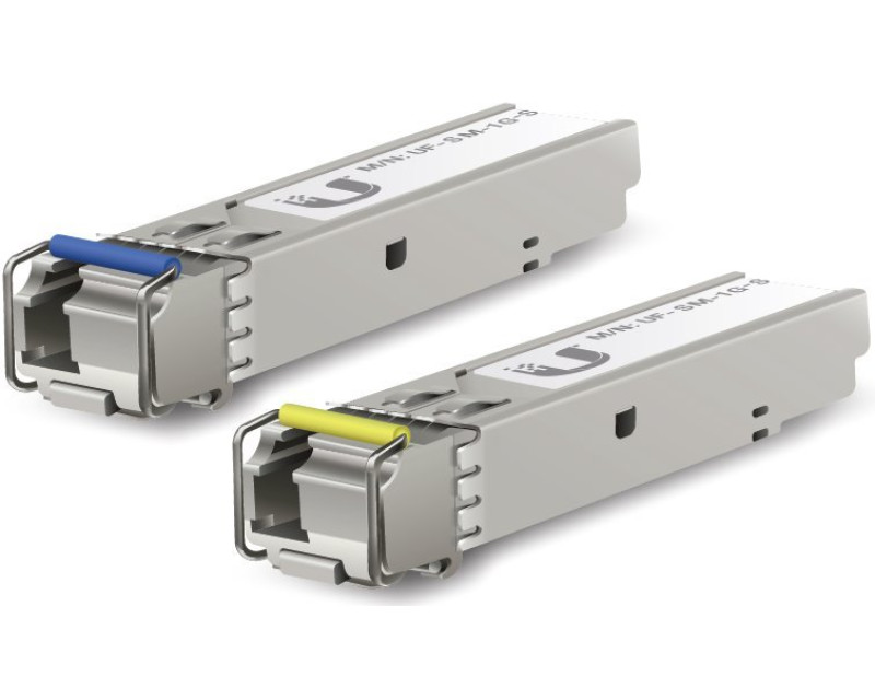 UF-SM-1G-S je sada singlemode 1G SFP WDM modulů pro přenos dat pomocí jednoho vlákna s jedním LC konektorem. Vlnová délka (Tx a Rx) těchto modulů je 1310 a 1550 nm a jsou vhodné pro spojení až na vzdálenost 3 km. Moduly jsou kompatibilní se všemi Ubiquiti prvky se SFP porty. Balení obsahuje 20 kusů - 10 párů.