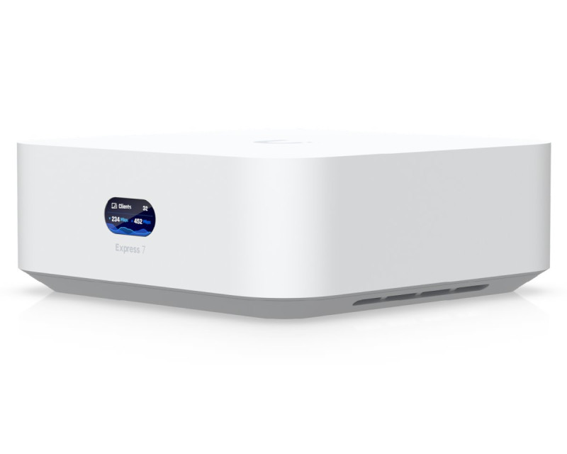 UniFi Express 7 je superkompaktní 10 gigabitová UniFi Cloud Gateway s integrovaným WiFi 7 AP. Pro připojení k síti je vybavena (1) 10Gbps WAN portem a (1) 2.5Gbps LAN portem. Vestavěný Tri-band WiFi 7 AP podporuje nejnovější standard 802.11be s modulační rychlostí až 5,7Gbps v pásmu 6GHz, 4,3Gbps v pásmu 5GHz a 688Mbps v pásmu 2,4GHz s pokročilým šifrováním WPA3. Díky předinstalované aplikaci UniFi Network umožňuje router správu až 30 UniFi zařízení. Kompaktní, ale výkonné provedení zařízení zajišťuje propustnost až 2,3Gbps při aktivním IDS/IPS. Router také podporuje různé typy VPN, včetně site-to-site VPN. Napájení je řešeno přes USB-C 5V/5A, napájecí adaptér je součástí balení.