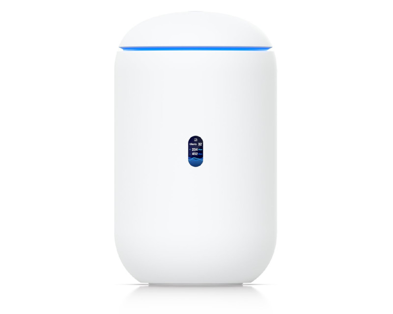UniFi Dream Router 7 od Ubiquiti je řešení sítě vše v jednom pro domácnosti a malé kanceláře. Jedná se o výkonné zařízení se 4-jádrovým CPU, 3 GB RAM, které kombinuje Router, WiFi 7 AP, 3-portový 2.5G switch s možností 802.3af PoE na jednom portu. Pro připojení do sítě disponuje 2.5G WAN portem a 10G SFP+ WAN portem. Router má předinstalované aplikace UniFi Network/Protect/Access/Talk a microSD slot, který slouží jako uložiště pro kamerové záznamy (64GB SD karta součástí balení). Pomocí UniFi network dokáže spravovat dalších 30+ zařízení z řady UniFi a pro UniFi protect umožňuje nahrávat 1x 4K kameru, 2x 2K kamery nebo 5x HD kamer. Třešničkou na dortu tohoto elegantního routeru je malý displej pro zobrazení aktuálního síťového provozu. Vestavěné Tri-Band WiFi 7 AP podporuje nejnovější standard 802.11be s modulační rychlostí až 5,7 Gbps v 6GHz pásmu, až 2,9 Gbps v 5GHz pásmu a až 688 Mbps ve 2.4 GHz pásmu a šifrování WPA3.