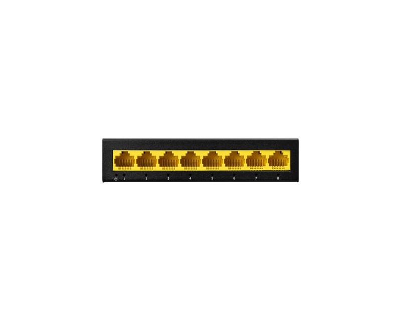 Switche a POE napájení 8portový switch – 8× RJ-45 1Gbps, standard IEEE 802.3 / 802.3u / 802.3ab / 802.3x, přenos 10/100/1000 Mbps (half/full duplex), přenos paketů 1.48 Mpps, šířka pásma 16 Gbps, MAC tabulka 4K, režim STANDARD (100 m), stavové LED (PWR, LINK/ACT), desktop provedení, hmotnost 0,45 kg, rozměry 125 × 75 × 27 mm, provozní teploty 0 °C až +40 °C (max. 90 % RH), napájení 12 V DC / 0,5 A.