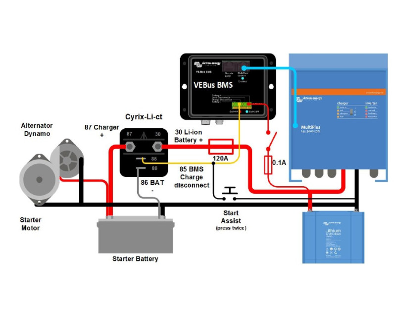 Cyrix-Li-ct paralelně propojuje olověnou startovací baterii a provozní LiFePO4 baterii: