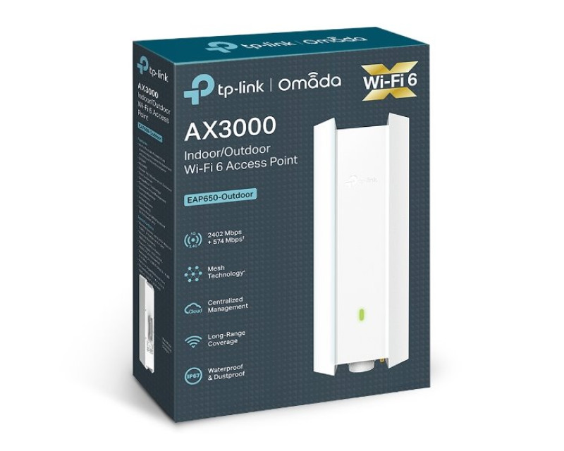 WiFi router TP-Link EAP650-Outdoor venkovní AP, 1x GLAN, 2,4 a 5 GHz, AX3000, Omáda SDN