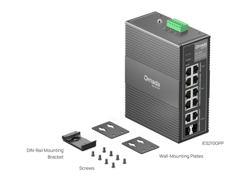 Průmyslový switch TP-Link IES210GPP je vybavený dvěma kombinovanými gigabitovými R45/SFP sloty a osmi gigabitovými RJ45 porty, z nichž 2 podporují PoE++ a 6 portů podporuje napájení PoE+. K dispozici máte celkový rozpočet napájení 240 W (až 60 W na každý port PoE++). Odolné hliníkové pouzdro s krytím IP40 zajišťuje odolnost vůči nepříznivému počasí a teplotám od -40 do +75 °C. Samozřejmostí je navíc ochrana proti blesku 6 kV. Switch nainstalujete buď na DIN lištu, nebo na stěnu.