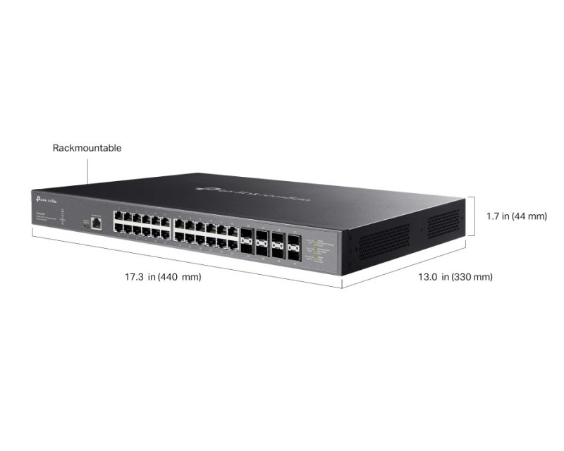 S řízeným switchem SX3832MPP od TP-Link získáte bleskurychlé 10G připojení, které využijete hlavně ve firmách a provozovnách. Tento plně řízený switch vám poskytne 24 portů 1/2,5/5/10 Gb/s RJ45 PoE++ a 8 portů 1/10G SFP+. Těšit se můžete na přepínací kapacitu 640 Gbit/s. Odolné kovové pouzdro umožňuje montáž do racku.