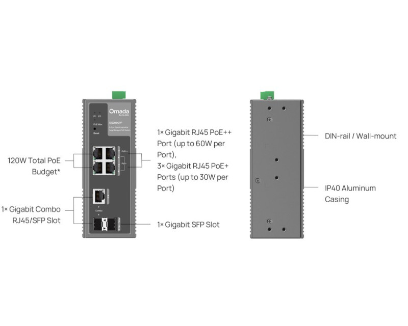 TP-Link IES206GPP je profesionální průmyslový gigabitový switch s podporou PoE+, PoE++ a centrální správou přes Omada SDN. Díky robustní konstrukci a provozní teplotě od -40 do 75 °C obstojí i v extrémních podmínkách. Switch nabízí 120W PoE výkon, včetně 1× PoE++ portu (až 60 W) a možnost vzdáleného napájení až do 250 metrů. Perfektní pro kamerové systémy, průmyslové aplikace nebo vzdálené instalace.