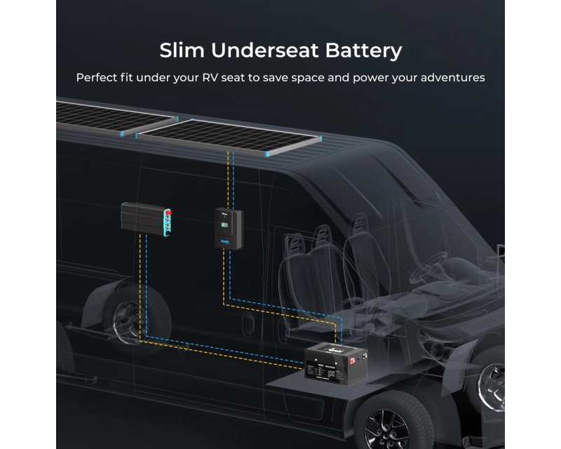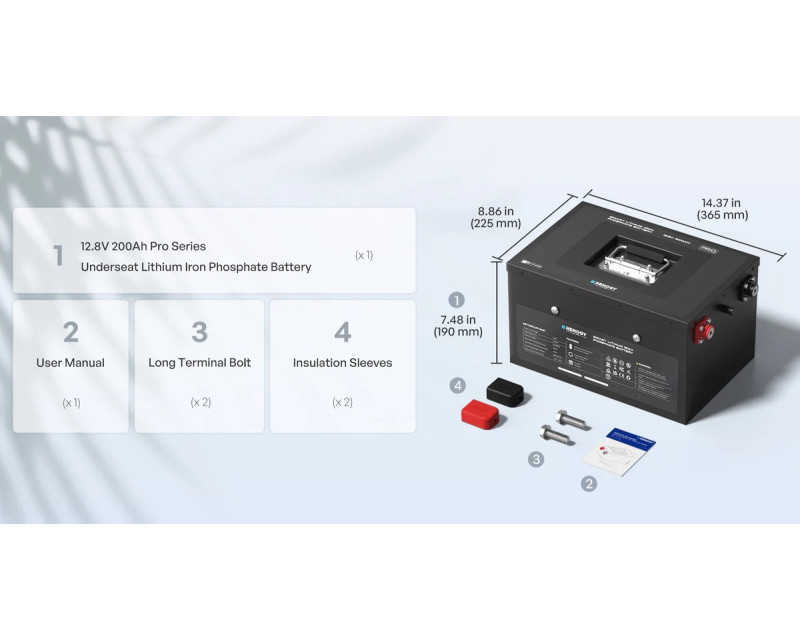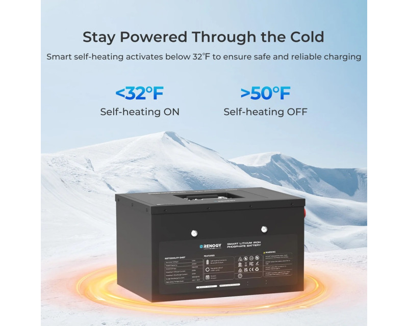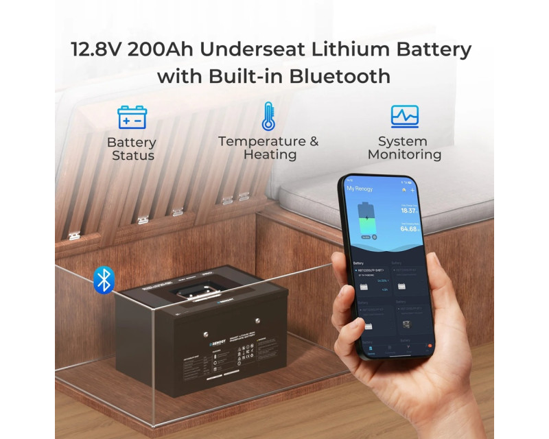 Renogy PRO 200Ah 12V LiFePO4 Smart baterie se samovyhříváním a Bluetooth, která perfektně padne pod sedadlo. Odolnost IP 65. Záruka 7 let.