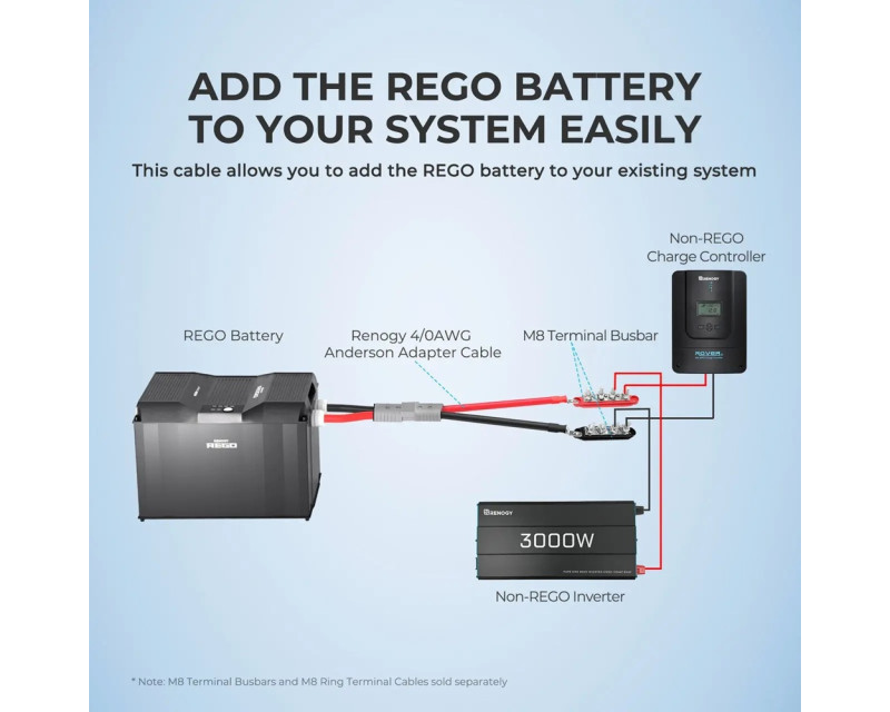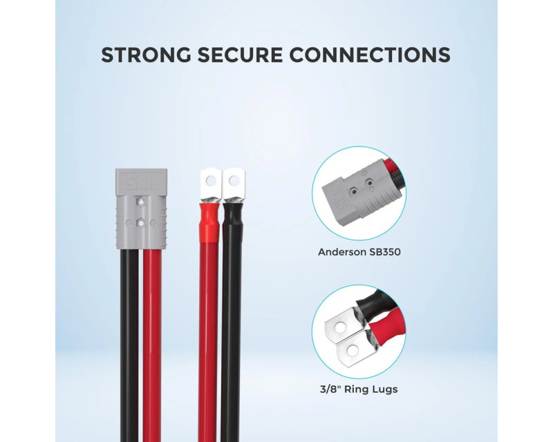 Tento adaptérový kabel Anderson s délkou 40 cm a průřezem 4/0 AWG je speciálně navržen pro práci s produkty řady REGO. Díky dvojici vyhrazených oček 9mm na jednom konci a konektoru Anderson SB350 na druhém konci vám umožňuje snadno přidat masivní kapacitu lithiové baterie REGO do vašeho stávajícího systému.