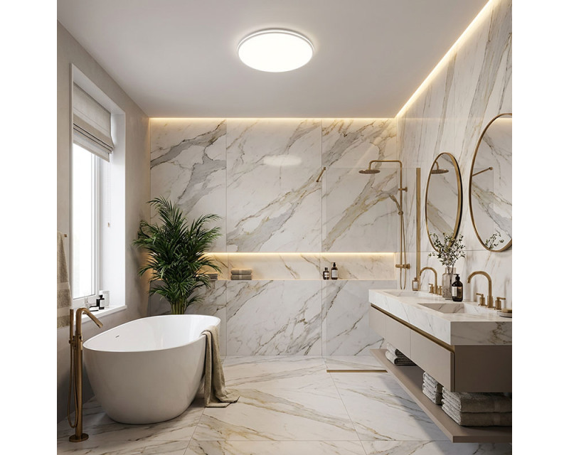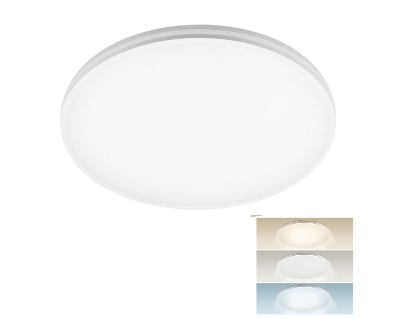 Corato nabízí možnost nastavení příkonu v rozmezí 16–24–32 W a světelného toku až 3200 lm, což umožňuje přizpůsobit intenzitu osvětlení aktuálním potřebám. Speciální přepínač umožňuje volbu teploty chromatičnosti mezi teplou (3000 K), neutrální (4000 K) a studenou bílou (6500 K), takže si snadno vytvoříte požadovanou atmosféru. Díky širokému úhlu svícení 120°, dlouhé životnosti LED až 25 000 hodin a vysokému indexu podání barev Ra > 80 je Corato spolehlivým a úsporným řešením pro každodenní použití.