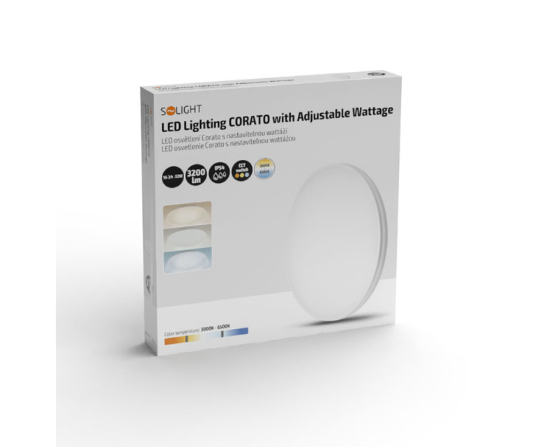 Solight LED osvětlení Corato s nastavitelnou wattáží a CCT, IP54, 16-24-32W, max. 3200lm, 3CCT, 38cm