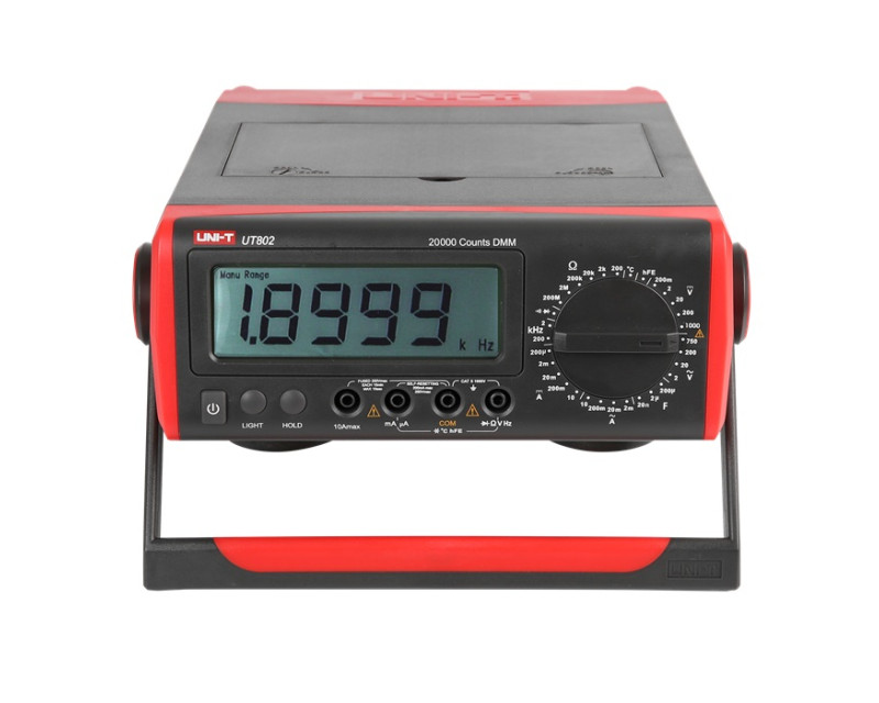 Stolní multimetr UT802 je víceúčelový elektronický měřicí přístroj. Splňuje s vysokou přesností a pohodlností obsluhy potřeby měření elektrických parametrů při údržbě elektronických zařízení.