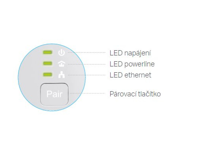 Indikace stavu: 3x LED (Power, Ethernet, Powerline)