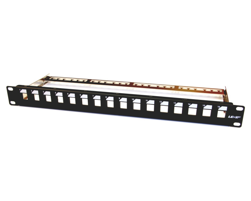 Patchpanel 16 portů neosazený LEXI-Net pro UTP/ FTP keystone velikost 1U