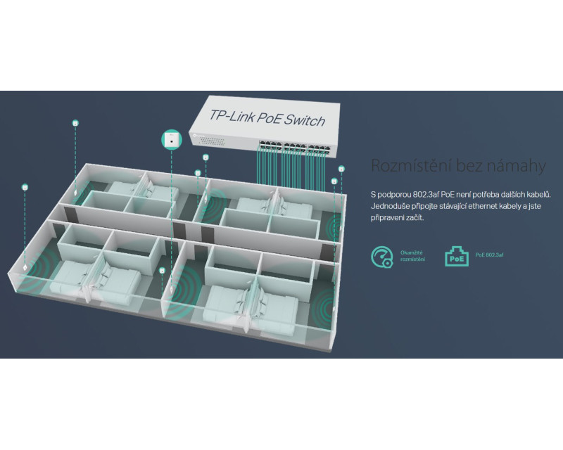 Podpora napájení přes ethernet (PoE, 802.3af) pro pohodlnou a cenově dostupnou instalaci