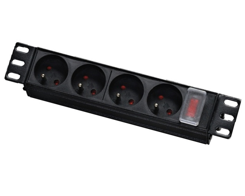 Napájecí panel 4 zásuvek 230V, vypínač, rack 10" 1,8m