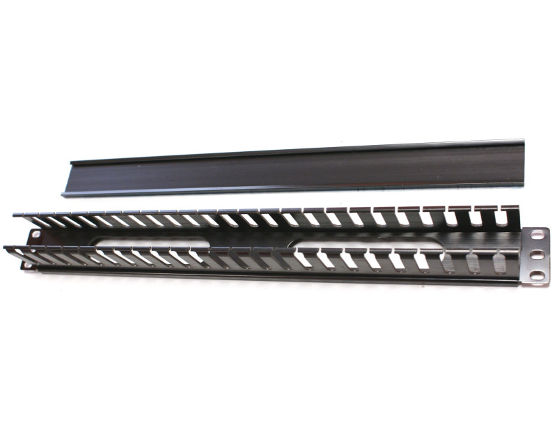 19"vyvazovací panel 1U jednostranná plastová lišta - černá s průchozími otvory do rozvaděče