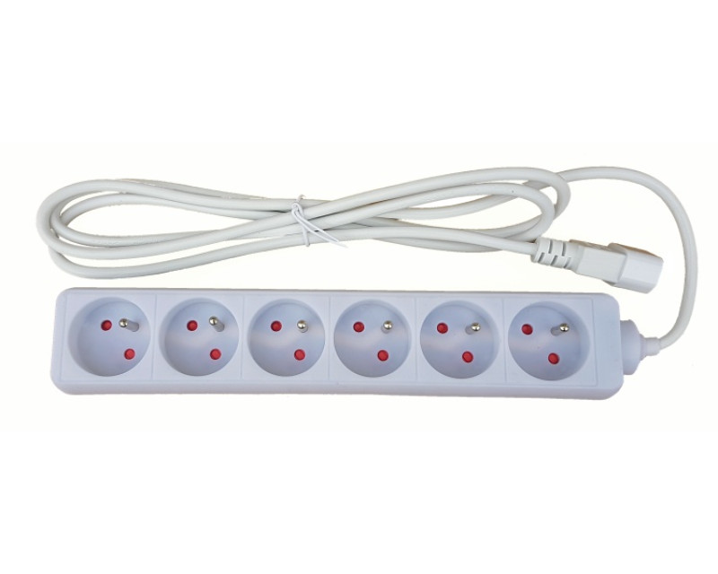 Prodlužovací přívod 250V s EURO konektorem C14 do UPS, 2m, 6 zásuvek