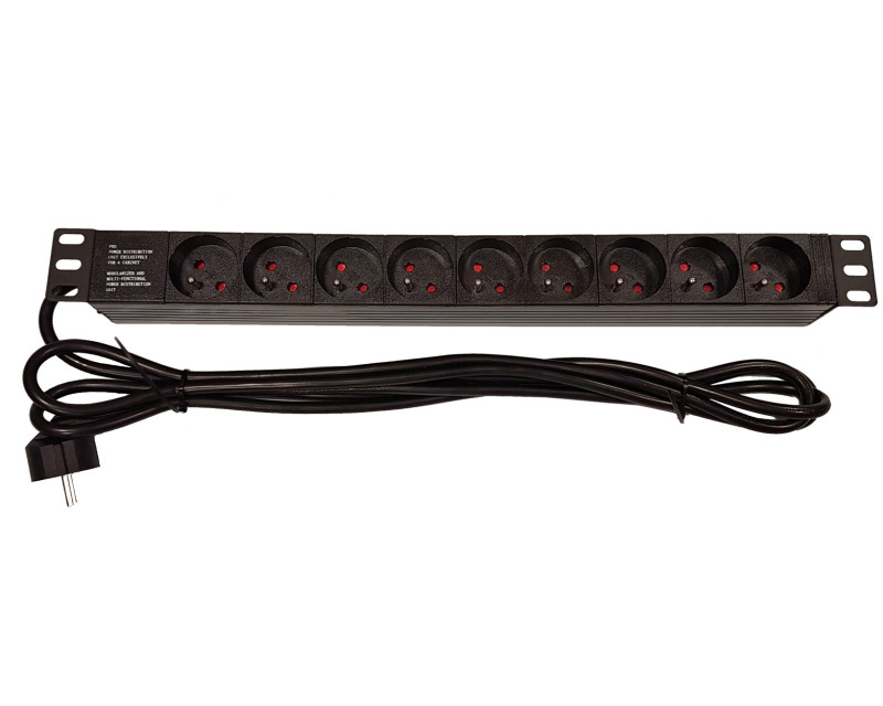 Napájecí panel 9 zásuvek 230V, 19'', 1U, kabel 3m