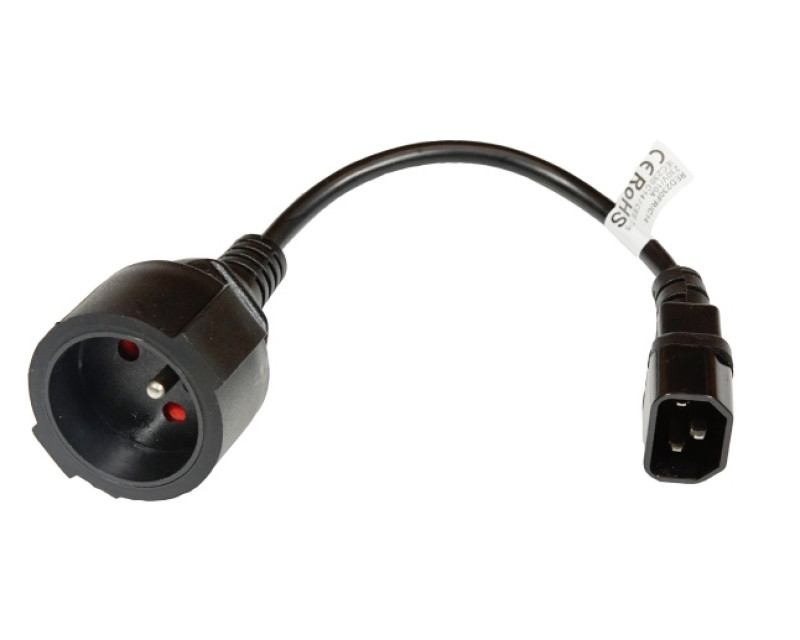 Redukce UPS 230V 1 zásuvka / UPS. Délka kabelu 23cm. (redukce CEE 7/5 na IEC320 C14