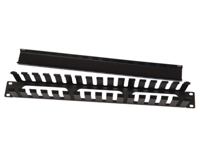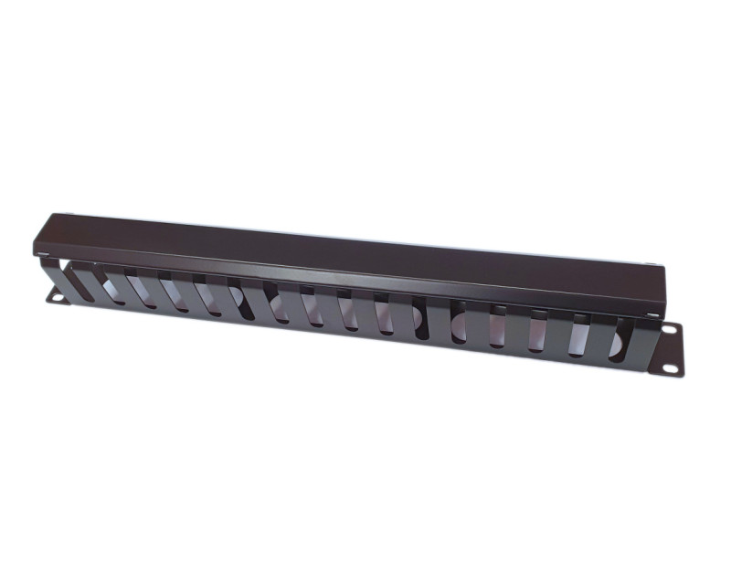 19"vyvazovací panel 1U jednostranná kovová lišta Lexi - černý s průchozími otvory do rozvaděče